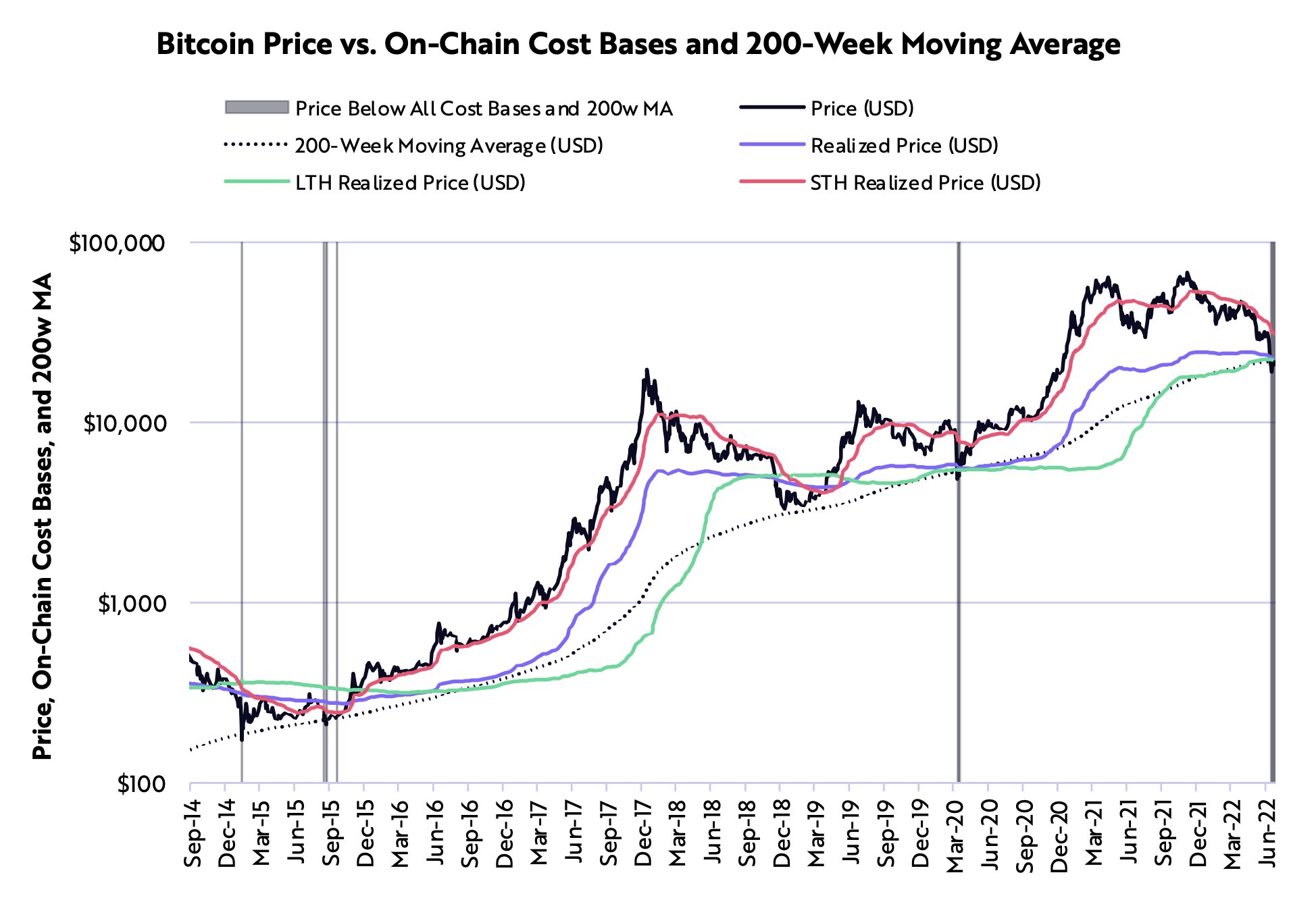 Elmandjra señala que BTC cotiza por debajo de sus bases de costos a corto y largo plazo de promedio móvil (MA) de 200 semanas.