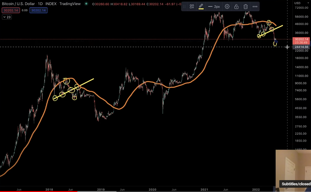 “Puedes ver en 2018, tuvimos un mínimo, tuvimos un mínimo más alto, [and] tuvimos este [which is] un patético intento de un mínimo más alto. [We] en última instancia, coloque un mínimo más bajo y vuelva a subir a la línea de tendencia. Además, fue un rechazo de la media móvil simple de 200 días. [SMA] entre.»