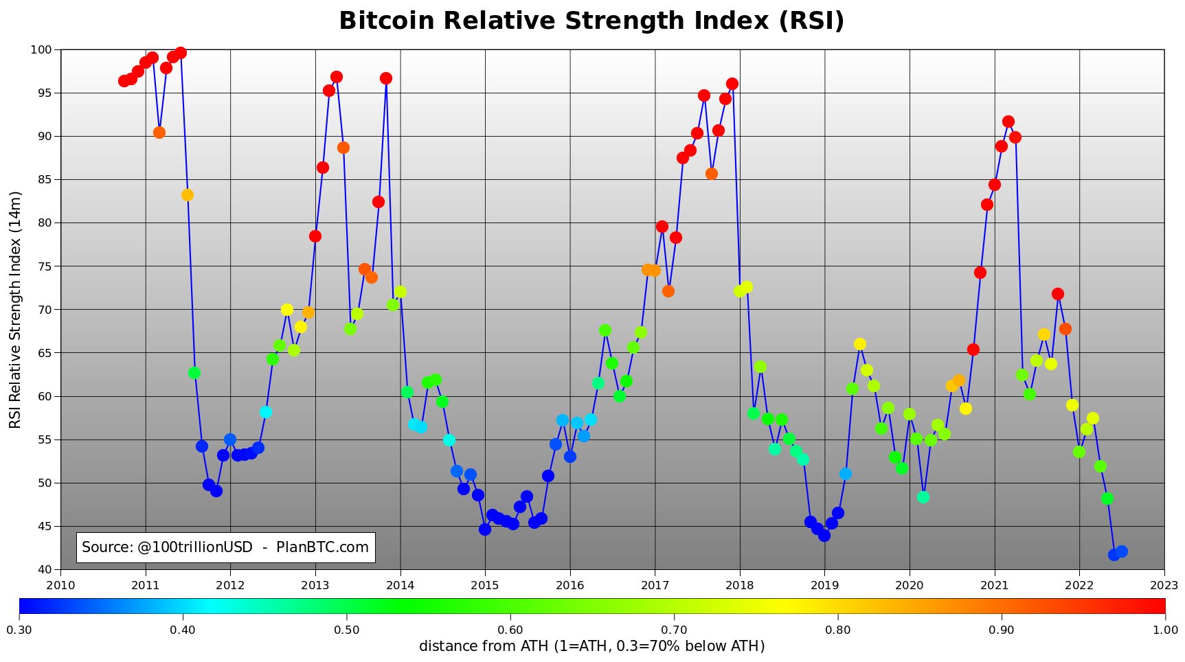El comerciante también dice que el RSI actual de BTC se encuentra justo por debajo del nivel 45 mencionado anteriormente. El Plan B parece pensar que es hora de que el RSI se vuelva alcista.