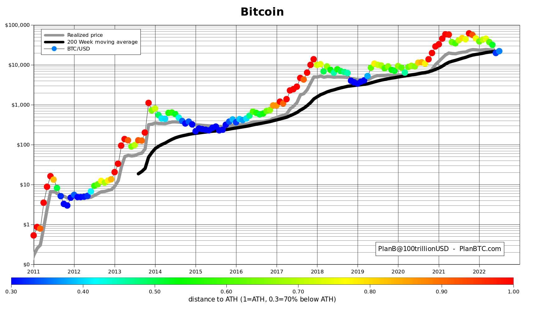 Mirando más de cerca el 200WMA de BTC, el Plan B dice que el criptoactivo más grande por capitalización de mercado está justo donde debería estar.