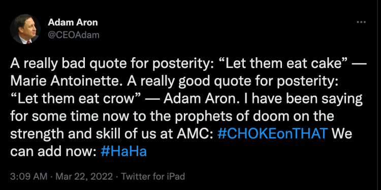 CEO de AMC Aron’s Tweet – Foto: Twitter