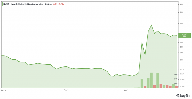 Hycroft Mining Holding Corporation (Nasdaq: HYMC) YTD – FOTO: KOYFIN