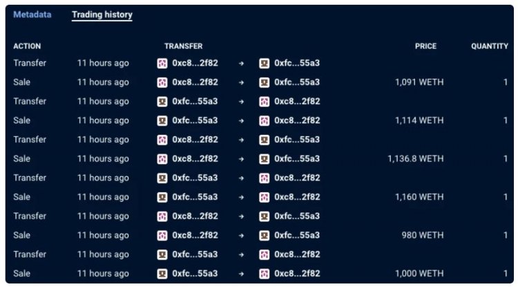 En una publicación del blog, DappRadar identificó dos carteras de criptomonedas que compraron y vendieron la misma NFT seis veces.