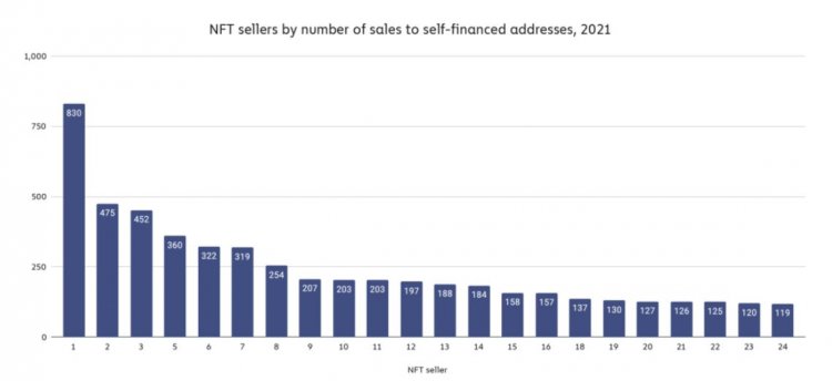 Chainalysis detectó y rastreó NFTs que se vendieron de ida y vuelta al menos 25 veces por el mismo grupo de carteras de criptodivisas, lo que según los analistas de la empresa son ejemplos manifiestos de operaciones de lavado.