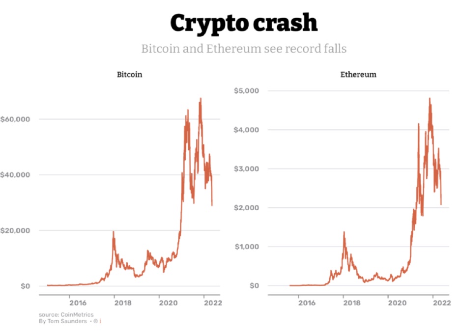 Como podemos ver en los gráficos anteriores, la caída del mercado de criptomonedas ha afectado a las monedas de manera similar, pero ¿qué está causando la recesión?