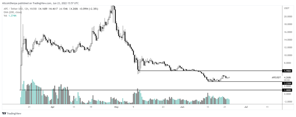 Luego comparte su pronóstico para otro token de metaverso, ApeCoin (APE). Él dice que la altcoin creada para la comunidad de tokens no fungibles (NFT) de Bored Ape Yacht Club puede revertirse a la baja en $ 6. APE actualmente vale $ 4.40.