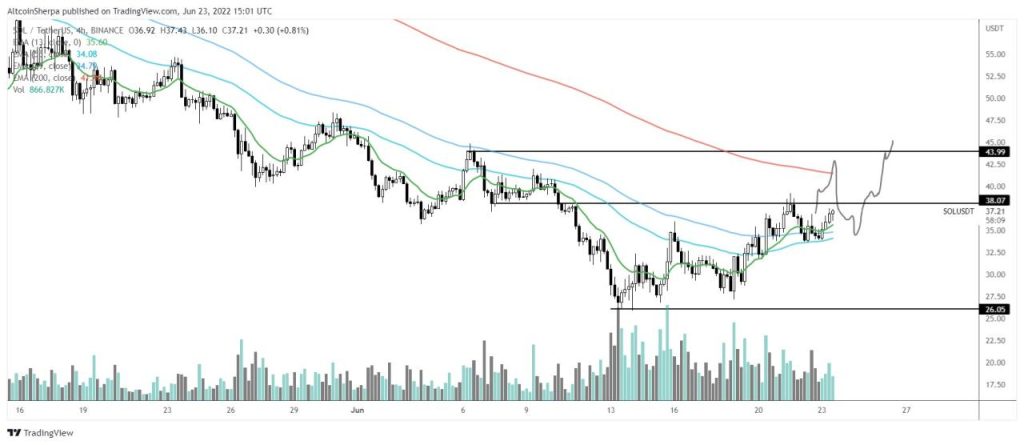 Altcoin Sherpa dice que no sabe qué tan alto puede llegar Solana, pero espera que el criptoactivo vea una resistencia de alrededor de $40. Él dice que SOL probablemente caerá si llega a $ 50. En el momento de escribir este artículo, la plataforma de contrato inteligente se cotiza a $ 38,31.