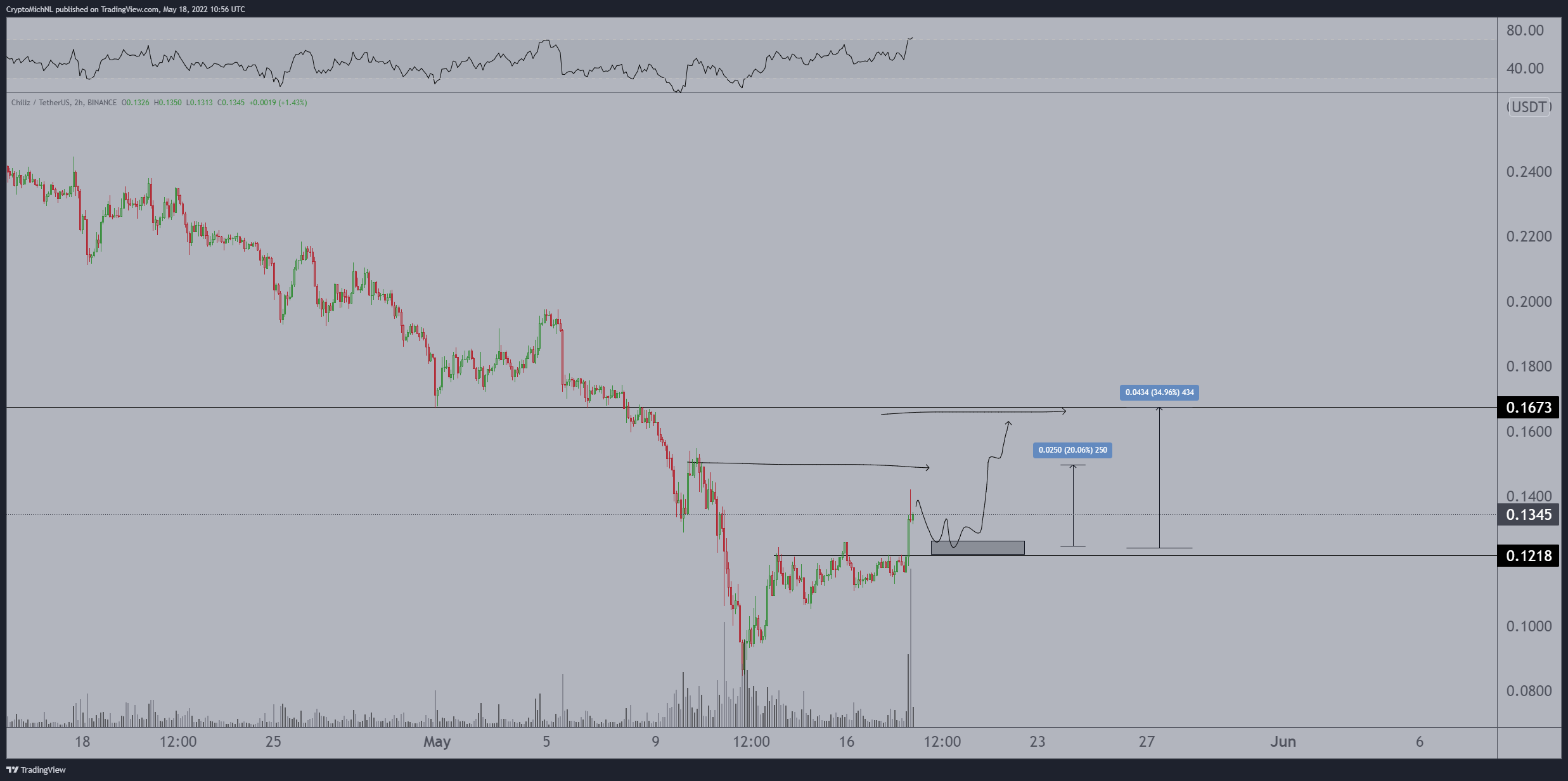 Van de Poppe también cree que los mercados de altcoin están listos para explotar. Destaca un gráfico de Chiliz (CHZ), nada que el token social centrado en los deportes pueda estar preparado para obtener ganancias del 20-35%.
