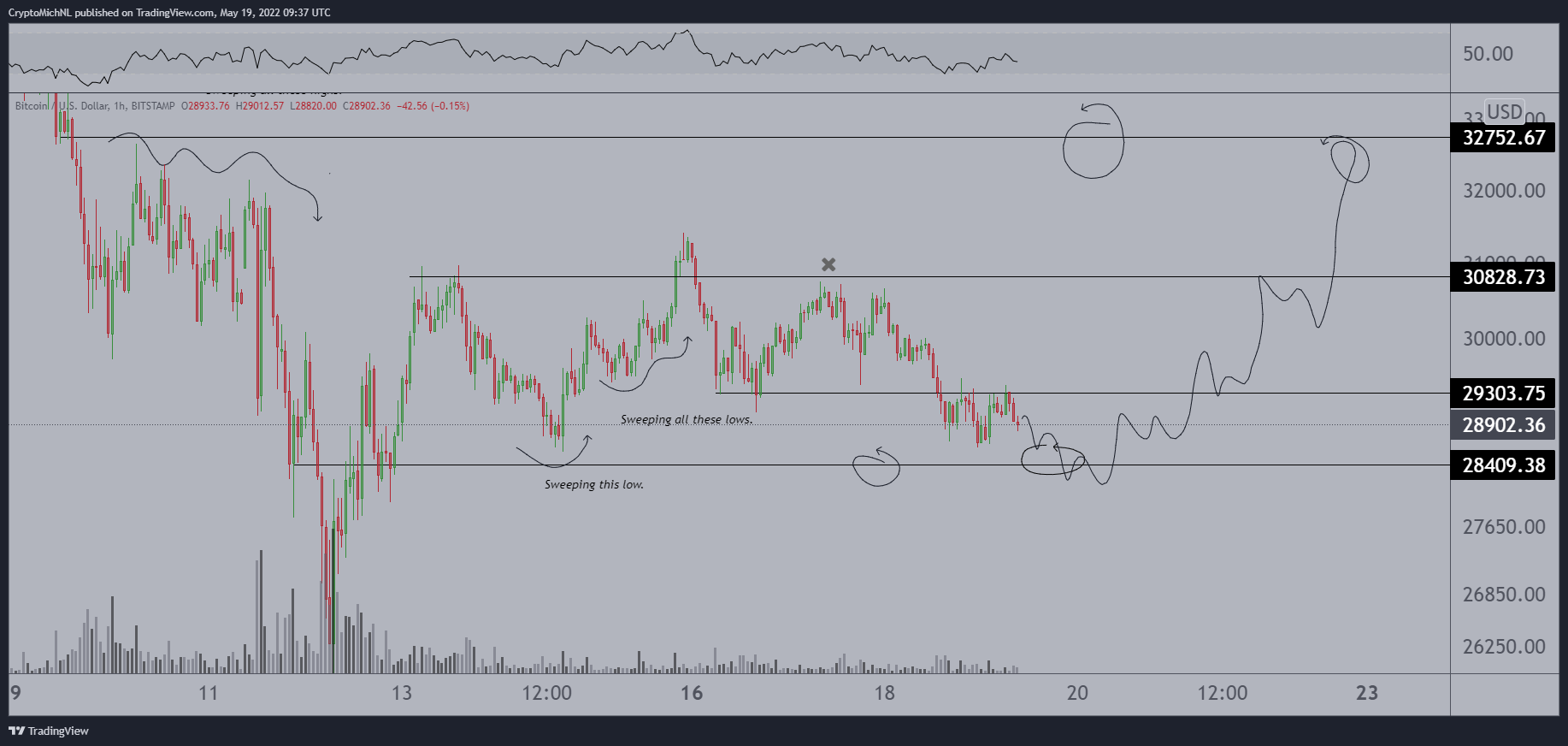 Permaneciendo en BTC, Van de Poppe dice que si Bitcoin puede cambiar el nivel de $ 29,400 de resistencia a soporte, entonces nada impedirá que la criptografía más grande por capitalización de mercado alcance $ 32,800.