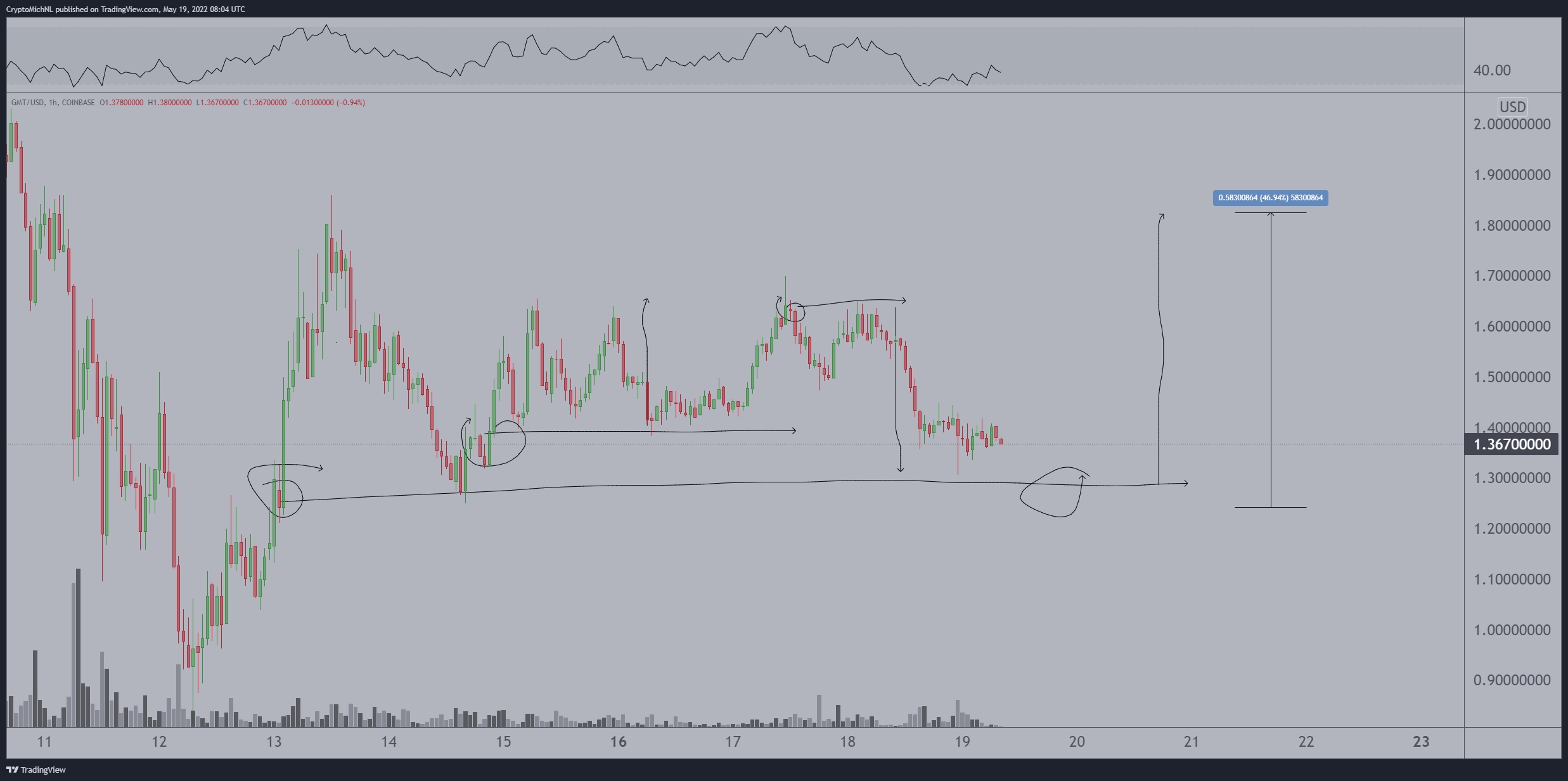 El criptoanalista le dice a sus 602.000 seguidores de Twitter que GMT pronto podría saltar aproximadamente un 47% hasta el nivel de $1,80.