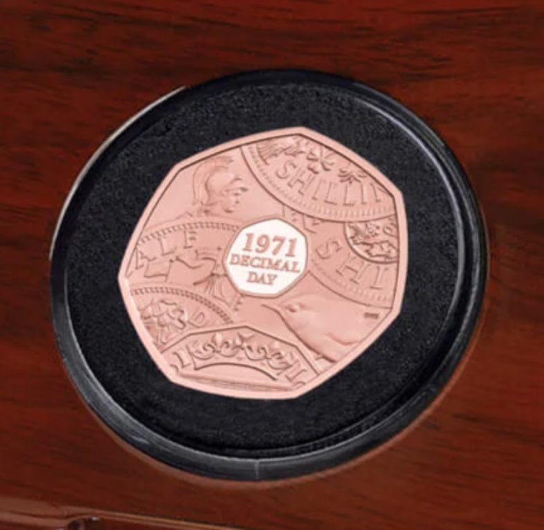 Unos 50 años después, The RoyalMint celebra el exitoso Día del Decimal con una nueva moneda conmemorativa de 50 peniques que trae a la memoria lo antiguo, monedas pre-decimales cuidadosamente seleccionadas y conjuntos que aportan un sentimiento de nostalgia a la ocasión.