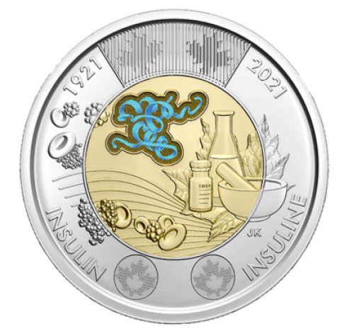 La moneda de circulación de 2 dólares de 2021 «Descubrimiento de la insulina» marca el centenario de una innovación canadiense que ha salvado millones de vidas.