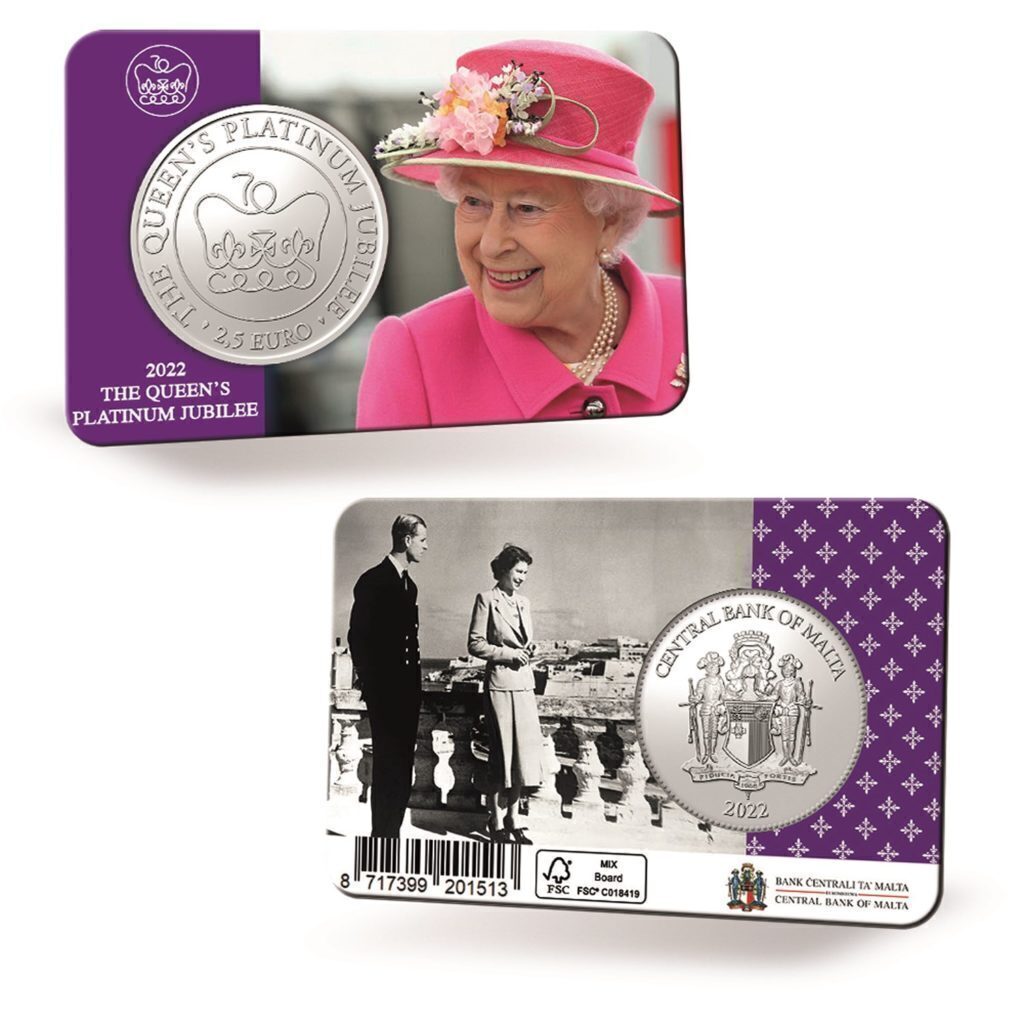 Hace setenta años, el 6 de febrero de 1950, la reina Isabel II subió al trono del Reino Unido y de la Mancomunidad de Naciones. Para celebrar el platino, la Real Casa de la Moneda acuñará una tarjeta oficial conmemorativa de 2,5 euros en moneda, en colaboración con el Banco Central de Malta.