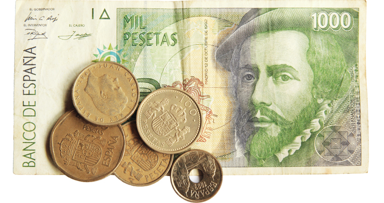 Cuando el euro sustituyó a la peseta española el 1 de enero de 2002, seguían en circulación monedas y billetes de peseta por valor de unos 48.750 millones de euros.