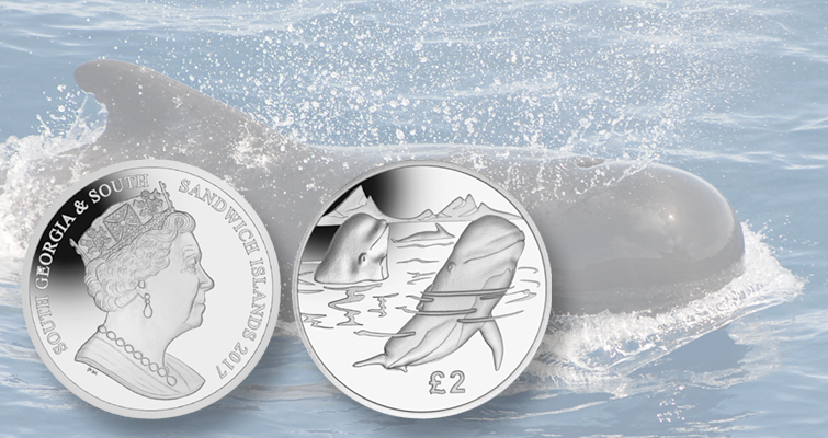 La Casa de la Moneda de Pobjoy continúa su serie de Vida Marina con monedas de las Islas Georgias del Sur y Sandwich del Sur con el calderón.