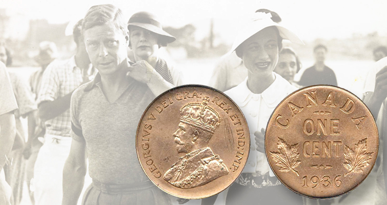 La abdicación del rey Eduardo VIII al trono para casarse con Wallis Simpson en 1936 llevó a Canadá a crear una de las rarezas más famosas de ese país, el Dot cent de 1936.