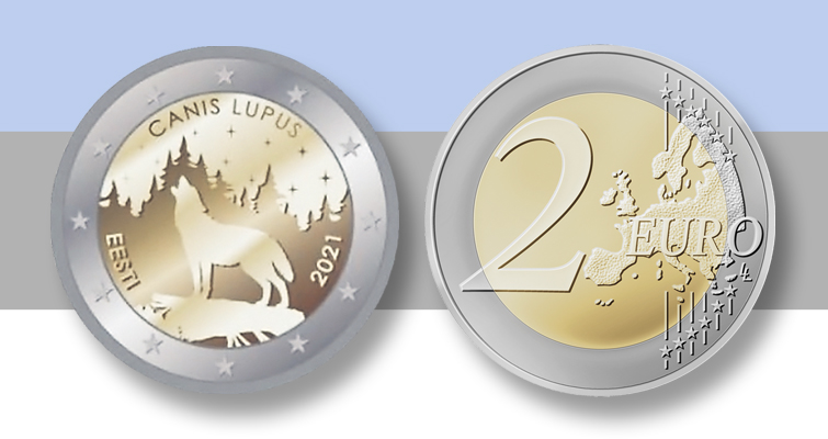 El nuevo diseño presentado por Estonia para una moneda conmemorativa de 2 euros que circulará en 2021 representa al animal nacional del país, el lobo.