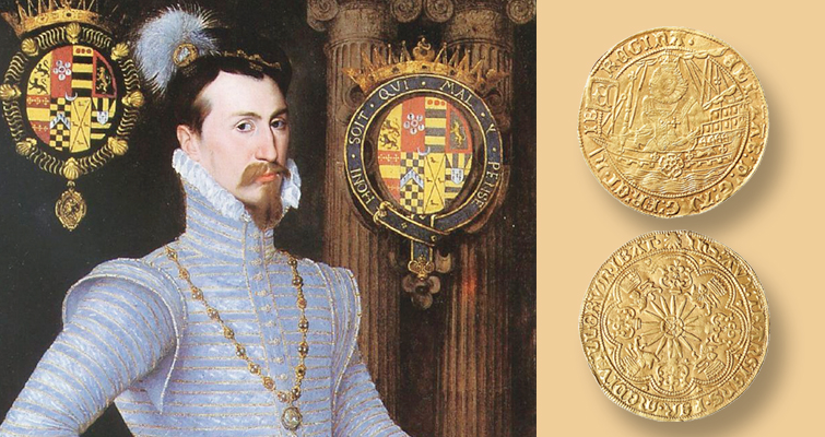 «Los nobles ingleses y sus imitaciones habían sido aceptados durante mucho tiempo en los Países Bajos y el aspecto bastante anacrónico y medieval del ryal fue diseñado para adaptarse a este medio de circulación,» según la casa de subastas. «Se acuñaron unas 3.000 piezas entre mayo de 1584 y finales de enero de 1587, una cifra ínfima si se compara con los aproximadamente 100.000 ángeles producidos por la Real Casa de la Moneda durante el mismo periodo.»