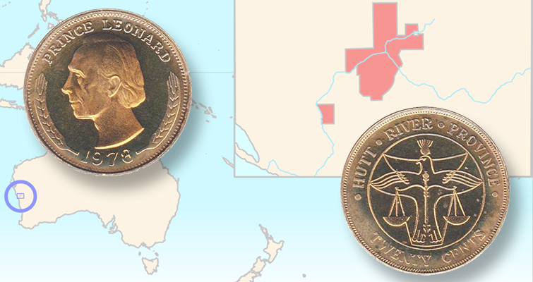 El Principado de Hutt River fue un prolífico emisor de monedas, pero tras más de 50 años la entidad se ha disuelto. Imágenes por cortesía de WorldCoinGallery.com.