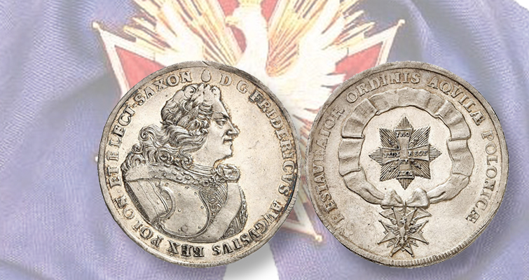 El llamado taler de la Orden de 1705 celebra la emisión inaugural de la Orden del Águila Blanca de Polonia.