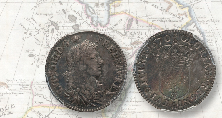 La moneda de plata de 5 soles del rey francés Luis XIV es una de ellas, con interés para coleccionistas de Francia, Canadá y Estados Unidos de América.