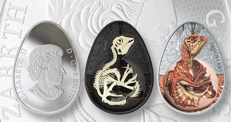 La Real Casa de la Moneda de Canadá celebra el tipo de dinosaurio encontrado en 1987 en una moneda en forma de huevo con características que brillan en la oscuridad.