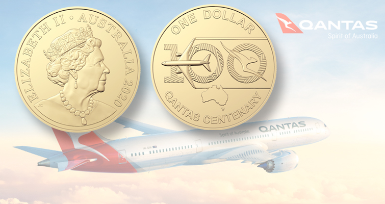 Para conmemorar el centenario de Queensland and North Territory Aerial Services Ltd. (Qantas), la Real Fábrica de Moneda y Timbre Australiana ha puesto en circulación una moneda de 1 dólar. (Qantas), la Real Casa de la Moneda de Australia y la aerolínea nacional han revelado un nuevo dólar australiano en circulación, un juego coleccionable de colección de monedas del centenario de Qantas de 11 piezas, junto con un concurso de «Billete de Oro».