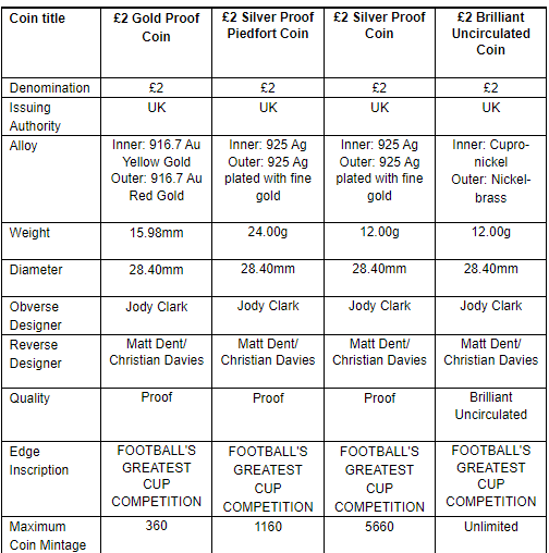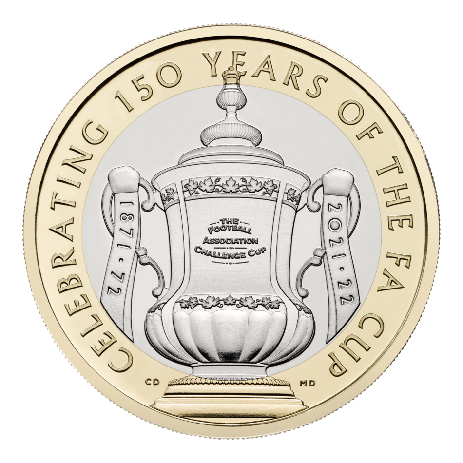 La Real Casa de la Moneda ha lanzado una moneda conmemorativa de 2 libras esterlinas para celebrar los 150 años de la FA Cup, en colaboración con la Asociación de Fútbol (The FA) durante la temporada de su histórico aniversario.
