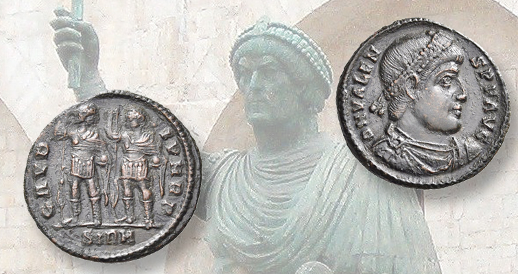 Una moneda de Valens, aparentemente única, en bronce, creada hacia el año 364 d.C., es uno de los muchos aspectos destacados de la subasta del 10 de mayo de Nomos Ag en Zúrich.