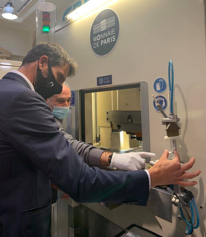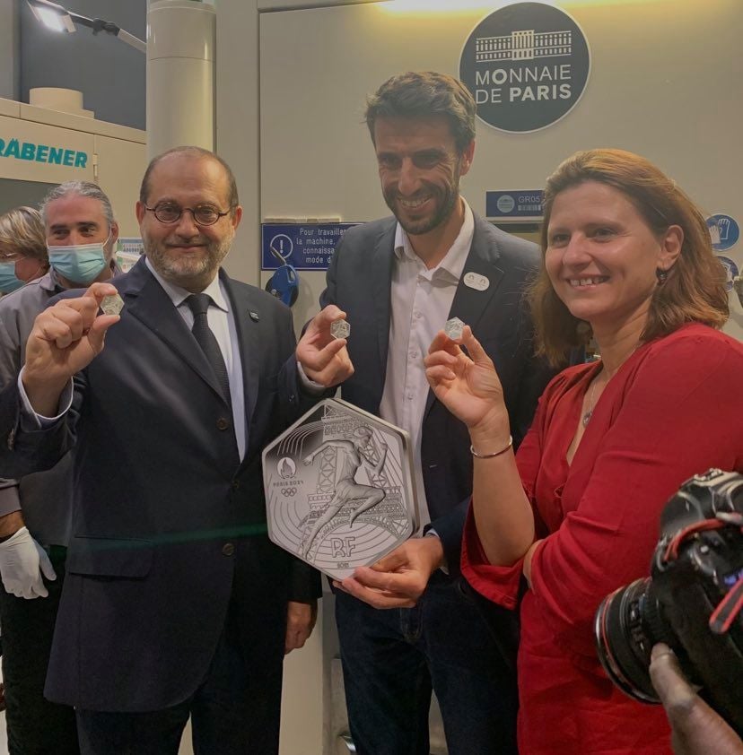 Esta tarde, alrededor de las 16:30 horas, tuvo lugar en el 11 quai de Conti la primera acuñación inaugural de los 10 euros de plata de la colección «Olimpiadas de París – 2024», en presencia de la ministra de deportes Roxana MARACINEANU y del presidente de «París 2024», Tony ESTANGUET. Las monedas hexagonales de oro y plata con licencia se acuñan bajo licencia del Comité Olímpico y destacan los Juegos Olímpicos de París que se celebrarán en 2024. La Monnaie de Paris (ceca francesa) estuvo representada para esta ceremonia por su director general Marc SCHWARTZ así como por el muy prolífico grabador en jefe de la ceca, Joaquín JIMENEZ.