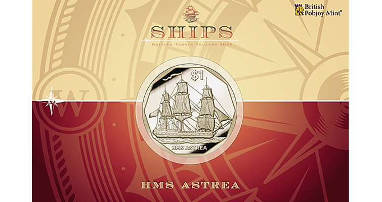 El HMS «Astrea» aparece en la tercera moneda de la serie de monedas de virenio de 1 $ de la Casa de la Moneda de Pobjoy para las Islas Vírgenes Británicas.