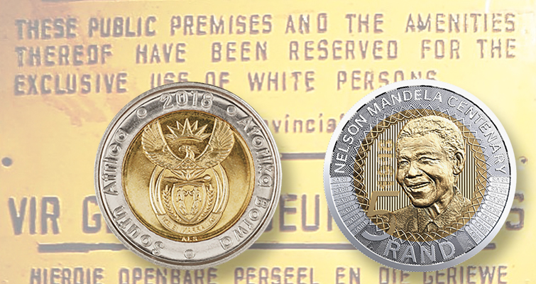 Como se informó en la edición del 9 de julio de Coin World , se están emitiendo cinco billetes especialmente diseñados para conmemorar el centenario de su nacimiento. Además, el Banco de la Reserva de Sudáfrica va a poner en circulación una moneda conmemorativa de 5 rands (con un valor equivalente a unos 37 centavos de dólar).