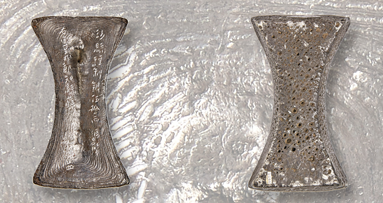 Este tipo de lingote con cabeza de hacha se utilizó durante las dinastías Jing, Yuan y Sung para pagar impuestos.